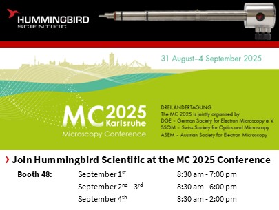 Visit Hummingbird Scientific’s Booth# 48 at the Microscopy Conference 2025 at Messe Karlsruhe in Rheinstetten – Germany, from September 1st to 4th, 2025.